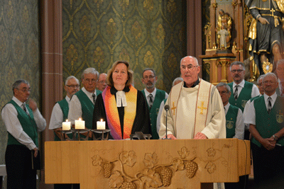 Der Männergesangverein Oberdiebach trug treffend ausgesuchte Lieder berührend vor. Chorleiter und Bariton Heinz Vogel glänzte mit Soli von der Empore. Gänsehaut verursachte vielen Gottesdienstbesuchern das vom Chor vorgetragene "Amen" zum Schluss des Gottesdienstes, in das der Segen der Geistlichen eingebunden wurde. Ein wunderschöner Gottesdienst, der lange in Erinnerung bleiben wird, der aber ohne die Mitwirkung der ausgezeichneten Organistin Stephanie van Heesch (Bingen) nicht möglich gewesen wäre.