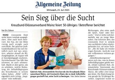 Anbei der Artikel: Sein Sieg über die Sucht - Kreuzbund-Diözesanverband Mainz feiert 50-Jähriges / Betroffener berichtet aus der Allgemeinen Zeitung vom 23. Juli 2025.