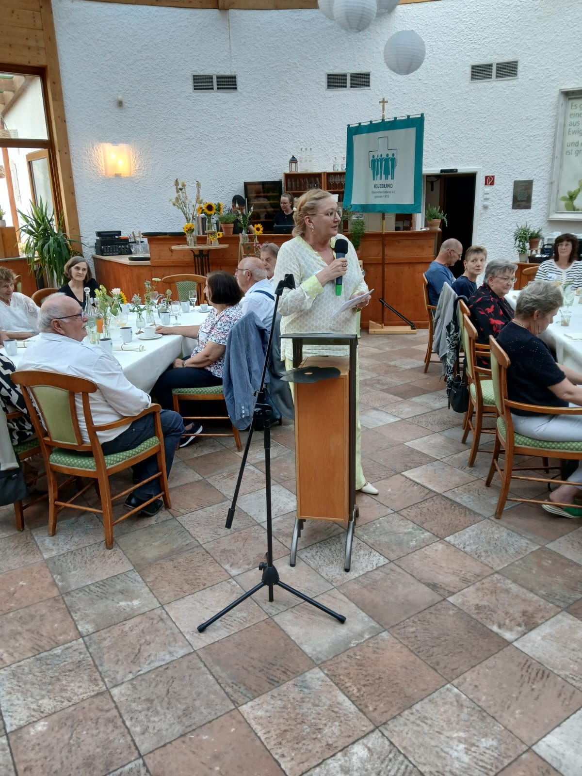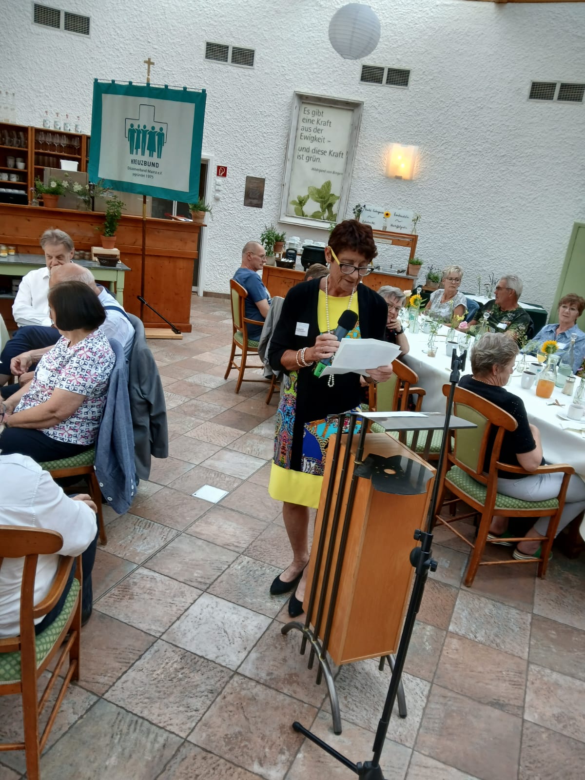 Nach dem Einzelsegen, der Segnung unserer neuen Kreuzbund-Fahne und des Brotes, das symbolisch unter uns verteilt wurde, begaben wir uns zum Hildegard Forum, wo der eigentliche Festakt zu „50 Jahren Suchtselbsthilfe des KB DV Mainz“ stattfand.