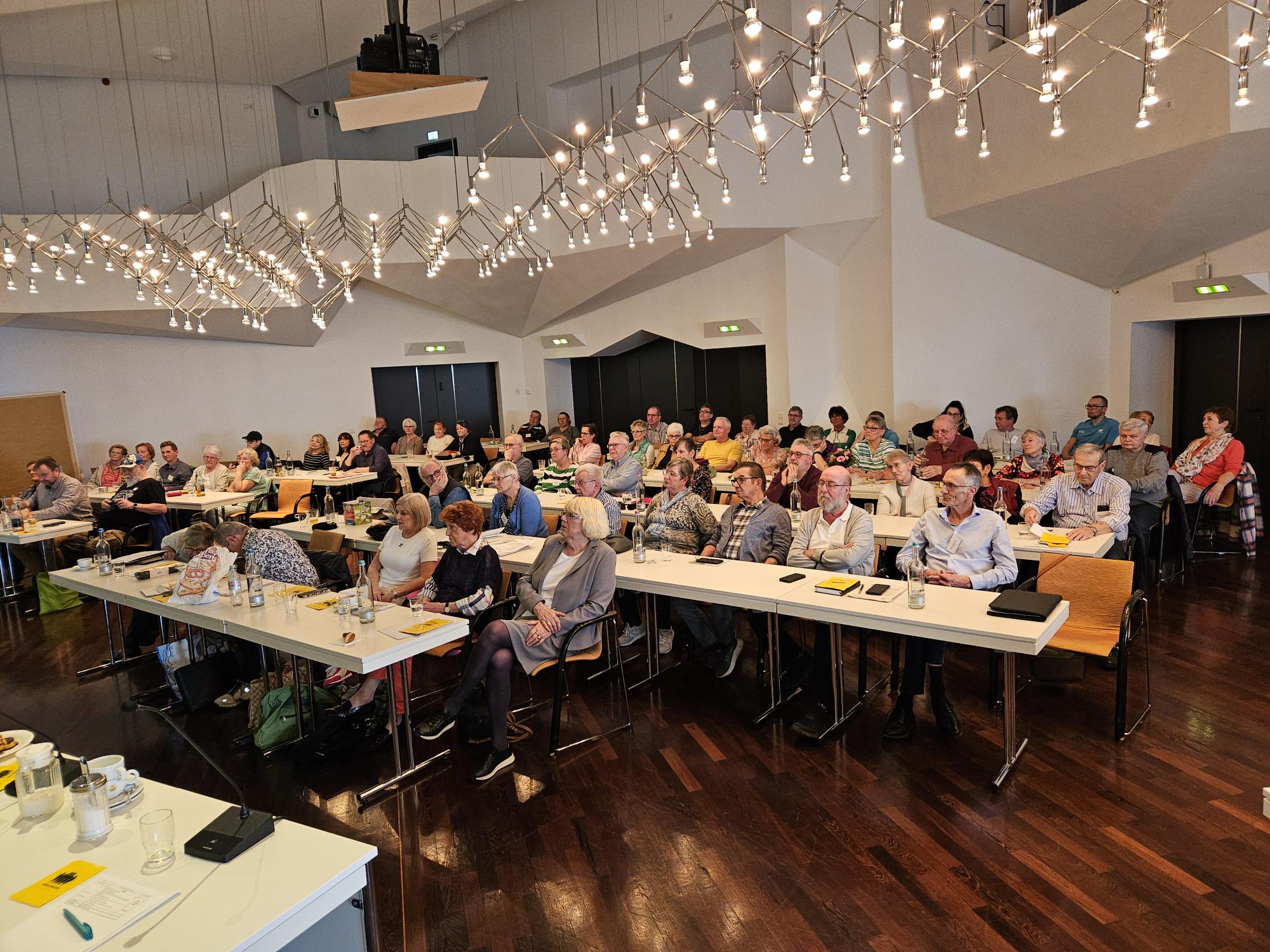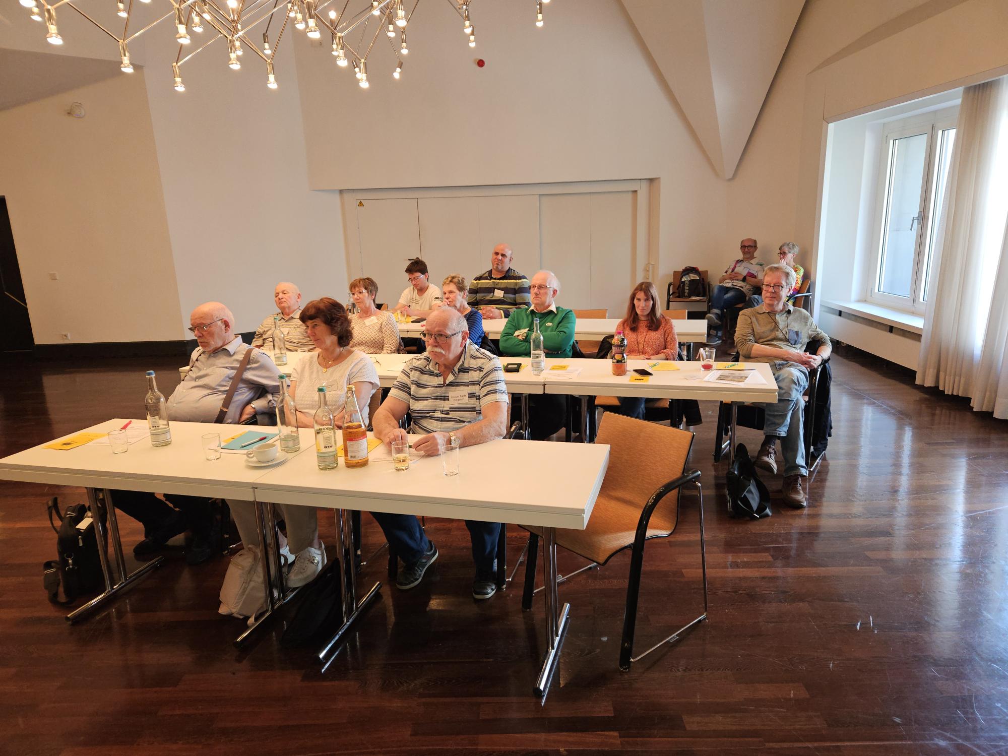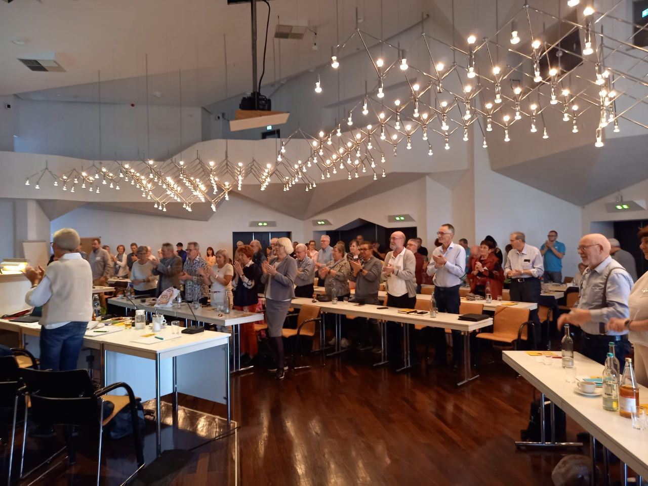 Am ersten Sommertag im Jahr, und das Anfang April, kamen 85 Weggefährtinnen und Weggefährten zur Delegiertenversammlung in unseren geliebten Erbacher Hof in Mainz. Der traditionelle Stehkaffee am Anfang sorgte schon für gute Laune, und Alle freuten sich über ein Wiedersehen.