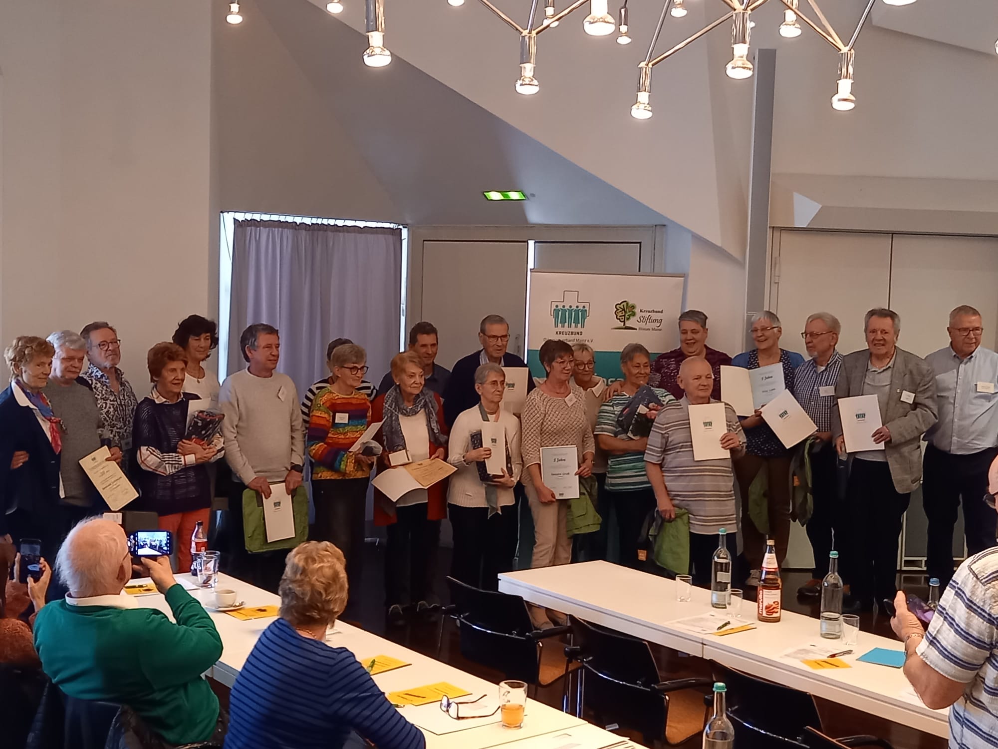Vor der Mittagspause wurden unsere diesjährigen Jubilarinnen und Jubilare aufgerufen und mit Urkunden und Präsenten feierlich geehrt. Es ist immer wieder eine Freude, wie die Weggefährten dem Kreuzbund die Treue halten.