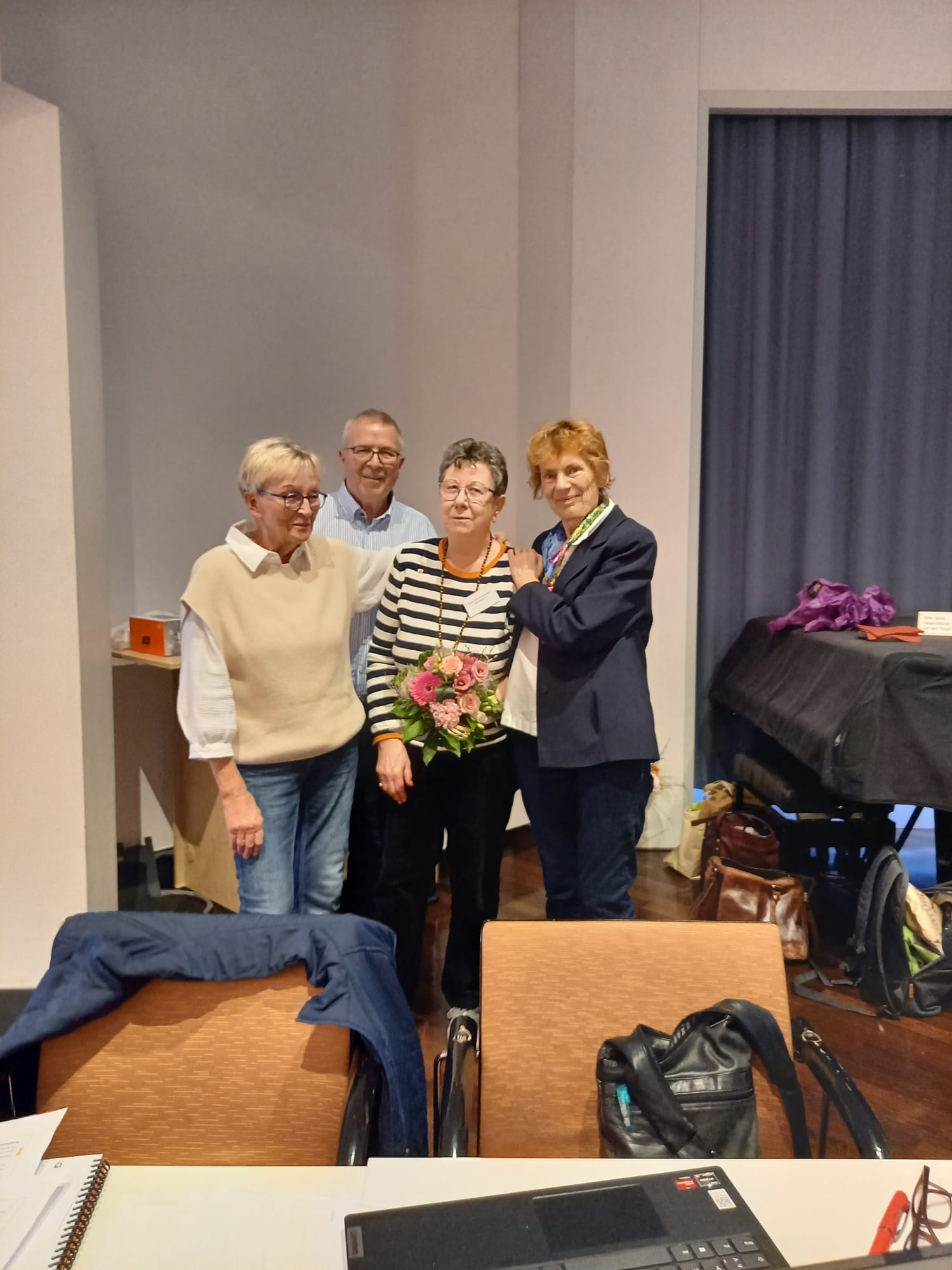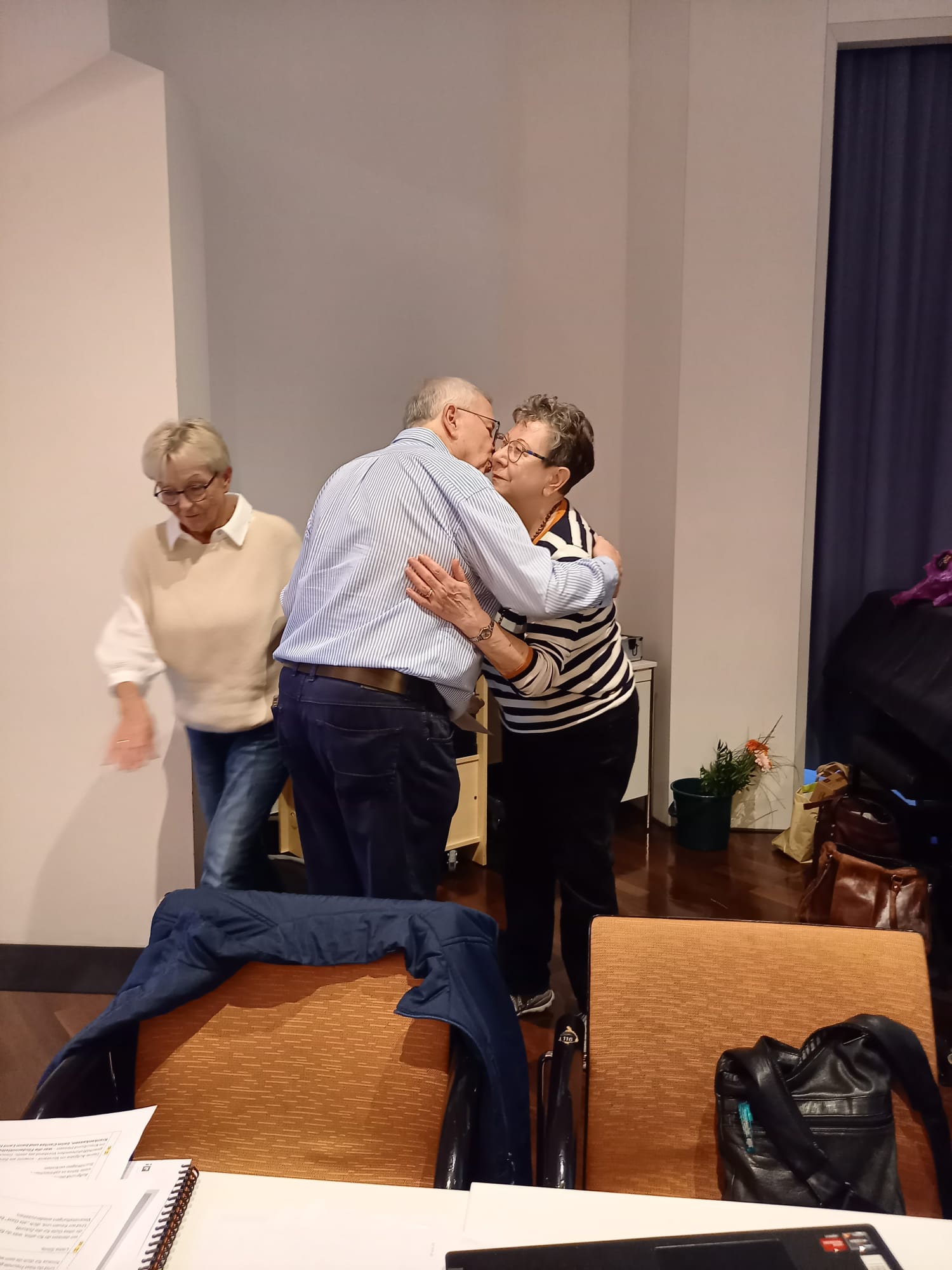 Wir verabschiedeten unsere langjährigen Vorstandsmitglieder Silvia Altmannsberger und Rolf Thunich, die aus gesundheitlichen Gründen nicht mehr im Vorstand weiterarbeiten möchten. Silvia war viele Jahre unsere stellvertretende Geschäftsführerin, gleichzeitig Geschäftsführerin des KB Hessen und unser Finanz-Genie. Rolf Thunich hat neben 12 Jahren Vorstandsarbeit 9 Jahre die Suchthilfeausbildung äußerst erfolgreich betreut. Wir sind beiden Weggefährten unendlich dankbar und werden sie fest in unserer Erinnerung behalten. Alle Weggefährten erhoben sich zum Abschied von ihren Stühlen, um diesen beiden Weggefährten ihre Wertschätzung zu erweisen.