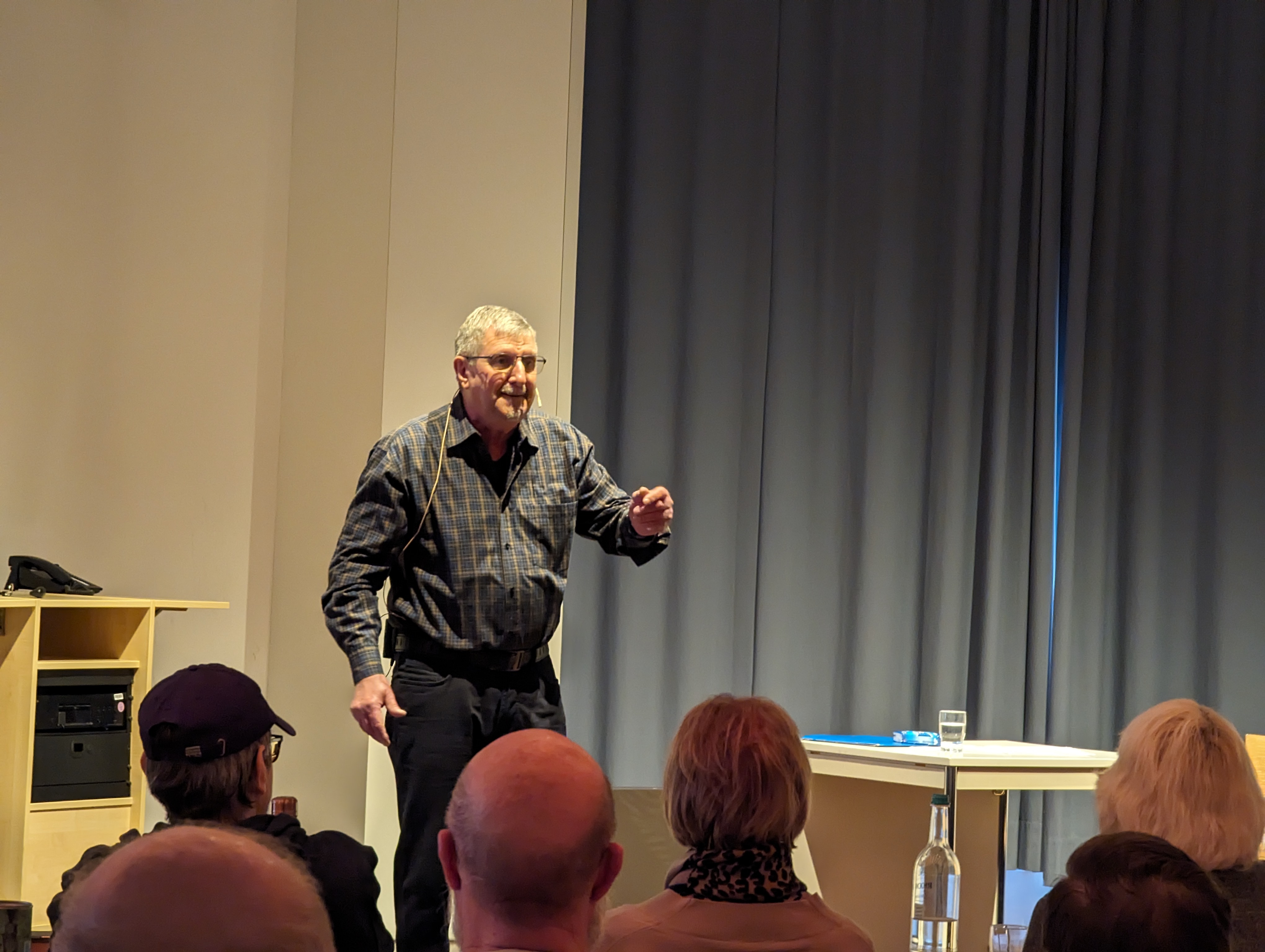 Als Höhepunkt unserer EV 2024 brachte unser Weggefährte Lothar Clade (Gruppenleiter der Gruppe Fürth/Odenwald) das Ein-Mann-Theaterstück „Morgen hör‘ ich auf“ auf die Bühne. Lothar ist Laienschauspieler und seit 25 Jahren trockener Alkoholiker. In vielen kurzen Monologen stellte er den Abstieg vom „harmlosen“ Problemtrinker bis ins lebensgefährliche, alkoholische Koma dar. Nach einer stationären Therapie der Titelfigur endete das Monodrama mit einem hoffnungsvollen „Nie wieder!“ Lothar brachte dieses Stück sehr eindrucksvoll und wirklichkeitsnah dar. Die schauspielerische Leistung war großartig, die das Publikum mit einem stürmischen Applaus belohnte.