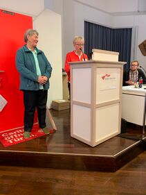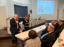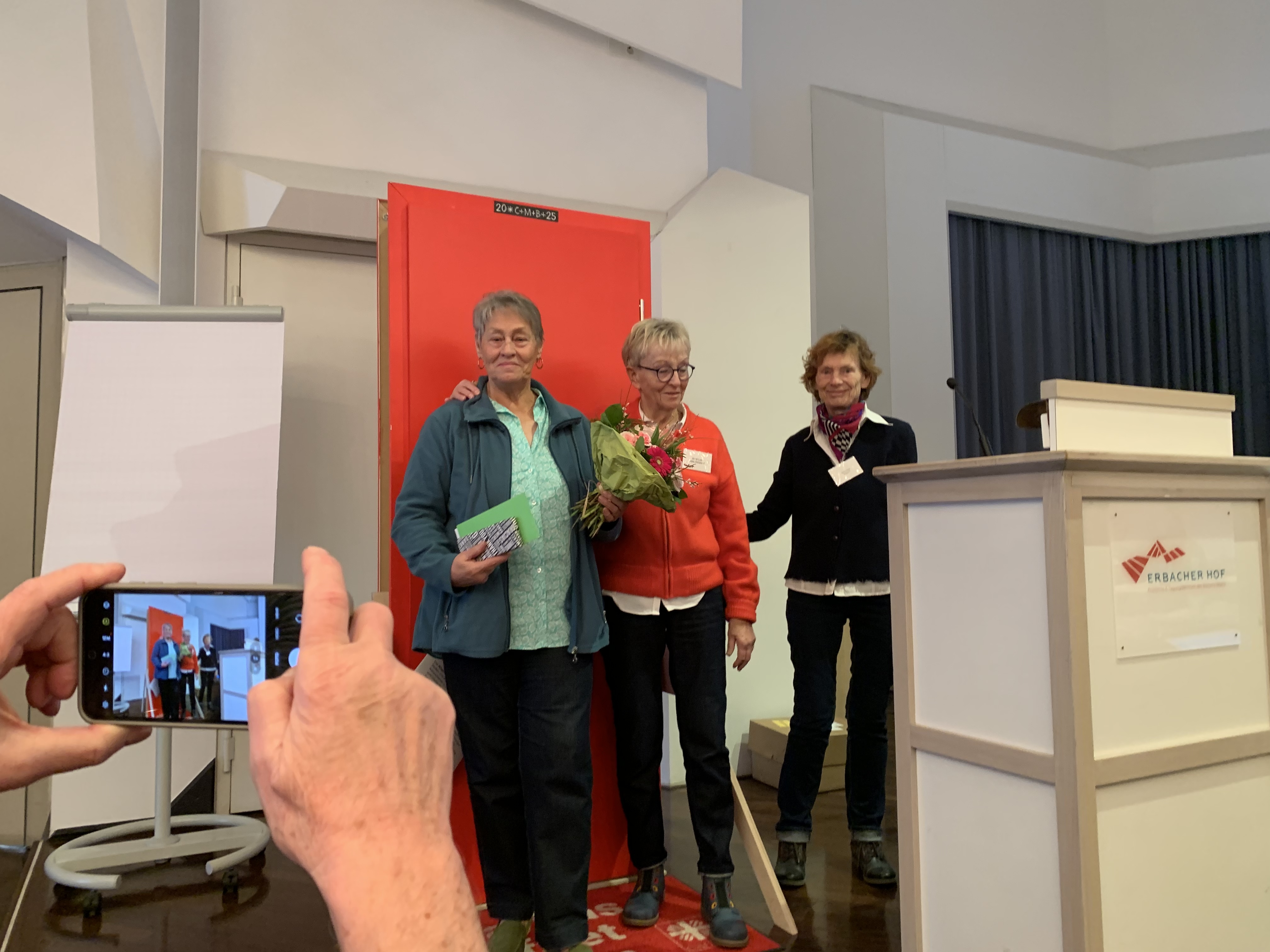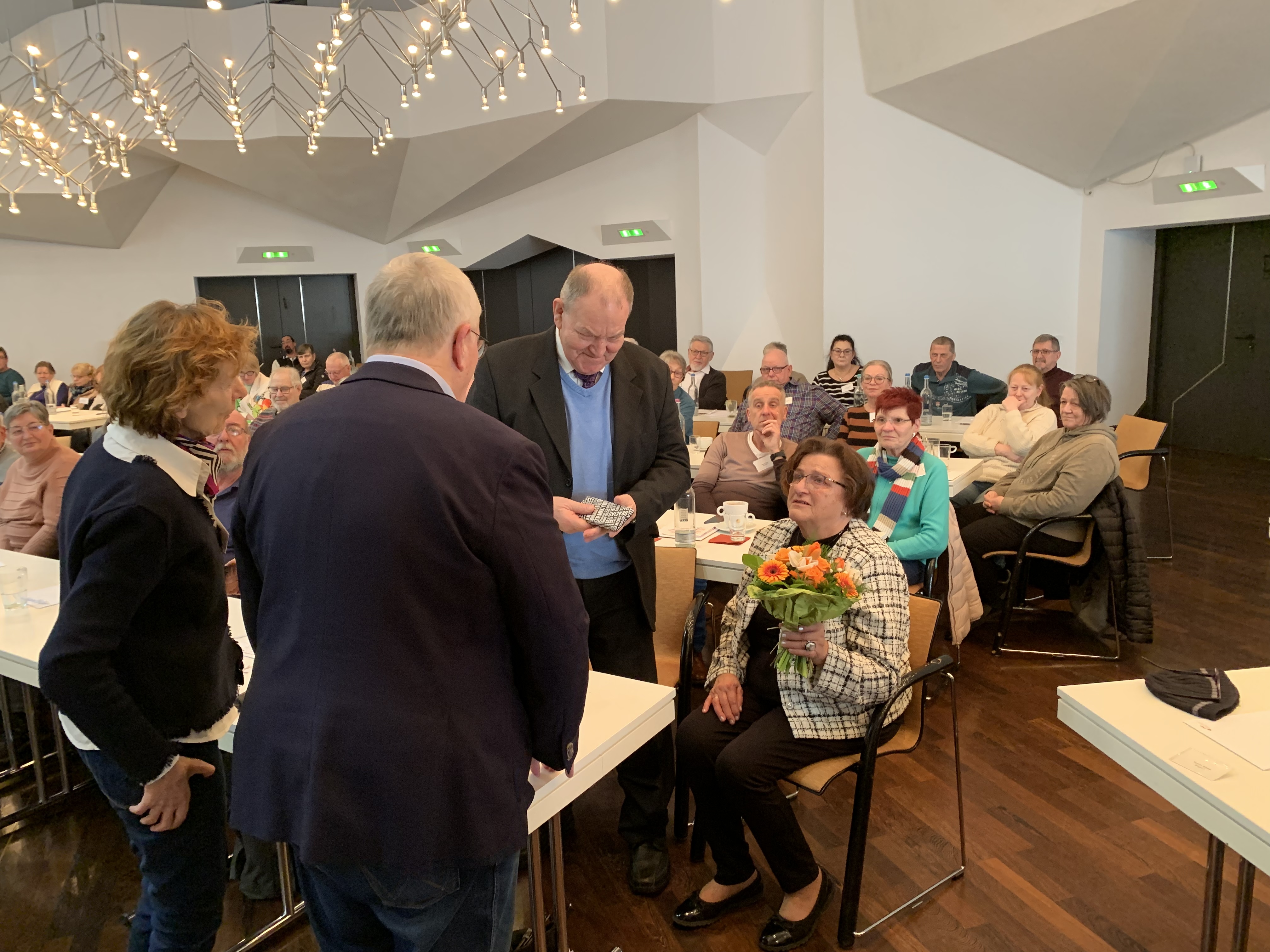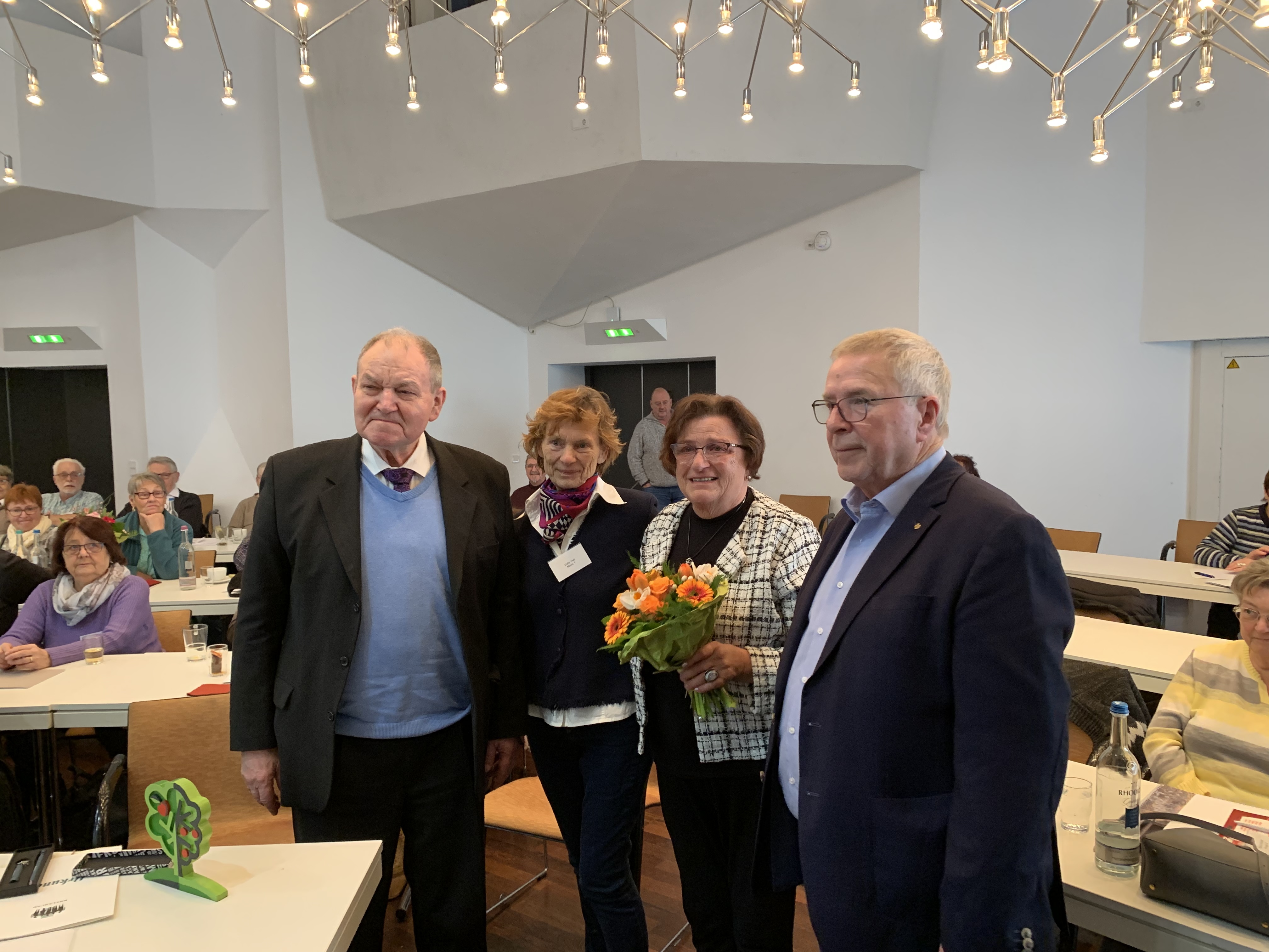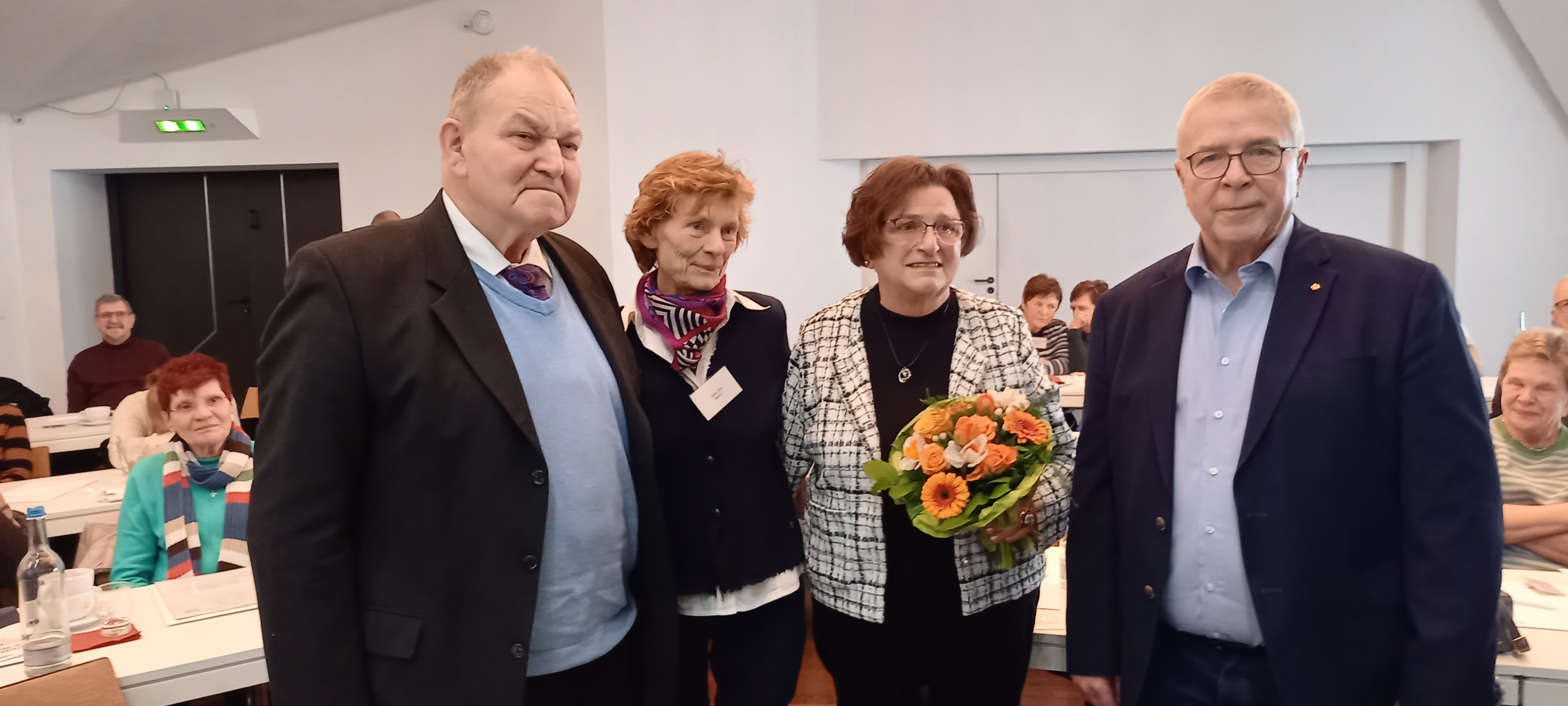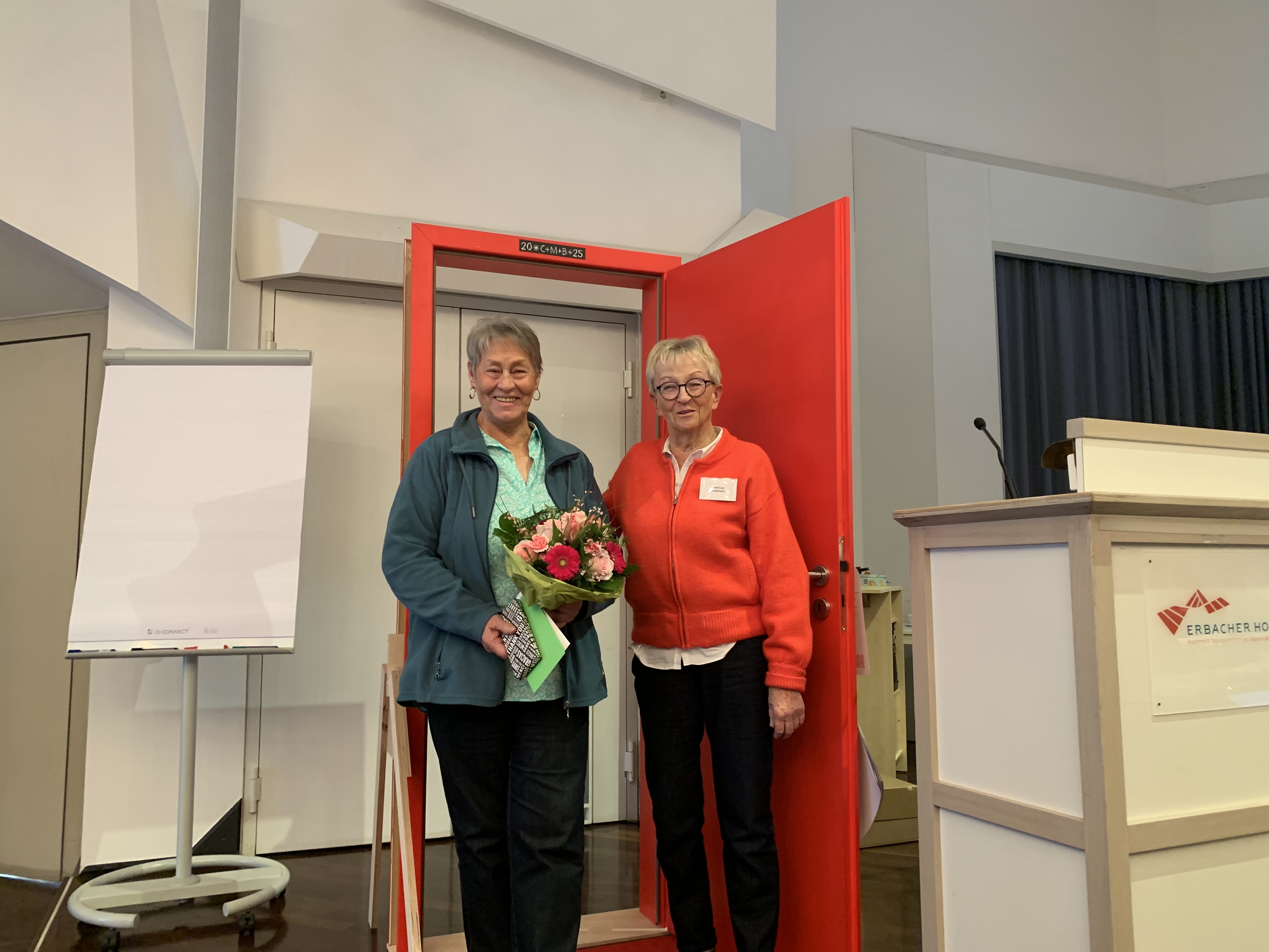 Der Kreuzbund musste sich wieder einmal von einer treuen und verdienstvollen Weggefährtin verabschieden. Ursel Lux stellte in einer kurzen Laudatio Helga Stadler und ihre Arbeit im Kreuzbund DV Mainz vor. 44 Jahre hat sie die Gruppe 2 in Groß-Gerau geleitet und war auch sonst an allen Events des Stadtverbandes aktiv beteiligt. Von 1979-1984 war sie Beisitzerin im DV-Vorstand. Wir dankten Helga Stadler für ihr großes Engagement und ihre geschätzte Arbeit im KB DV Mainz mit Blumen und einem Präsent.