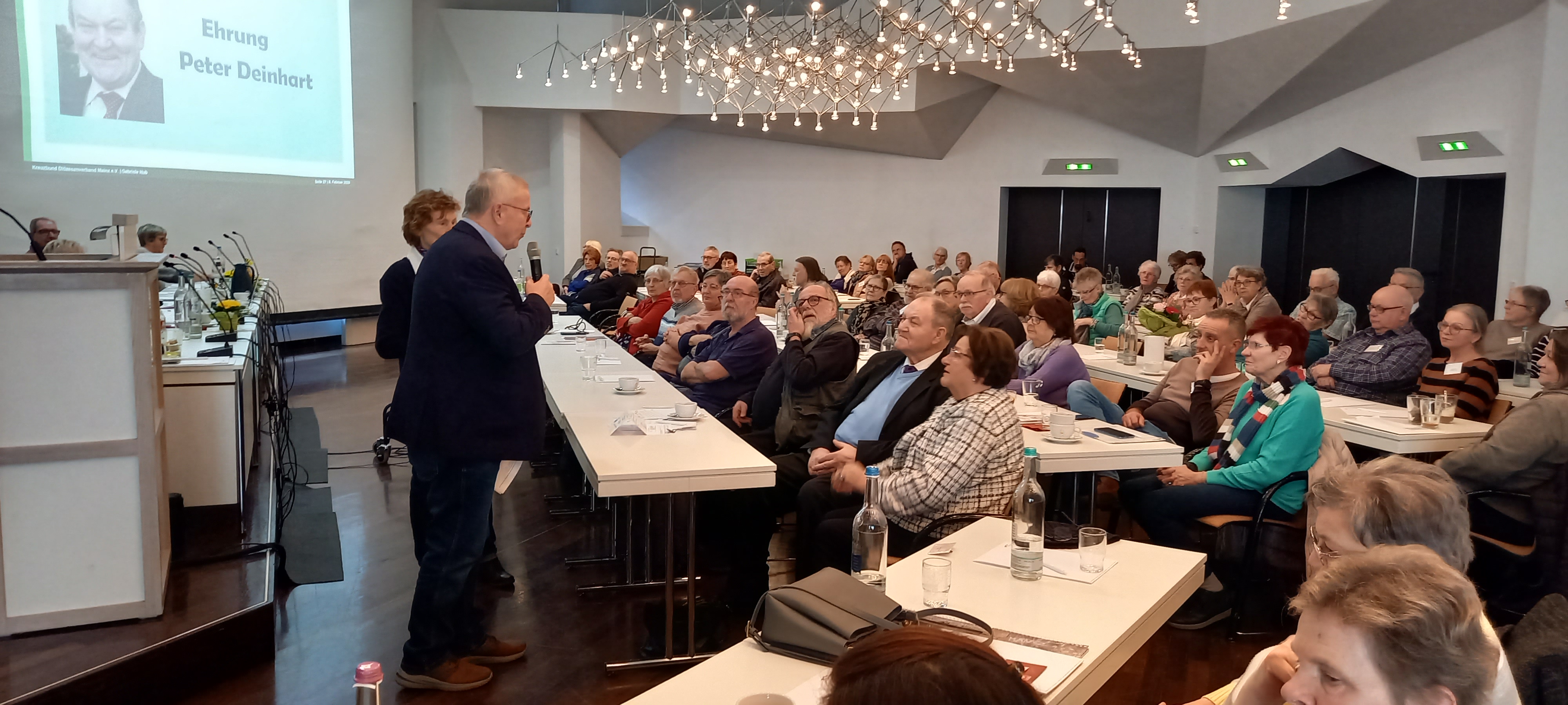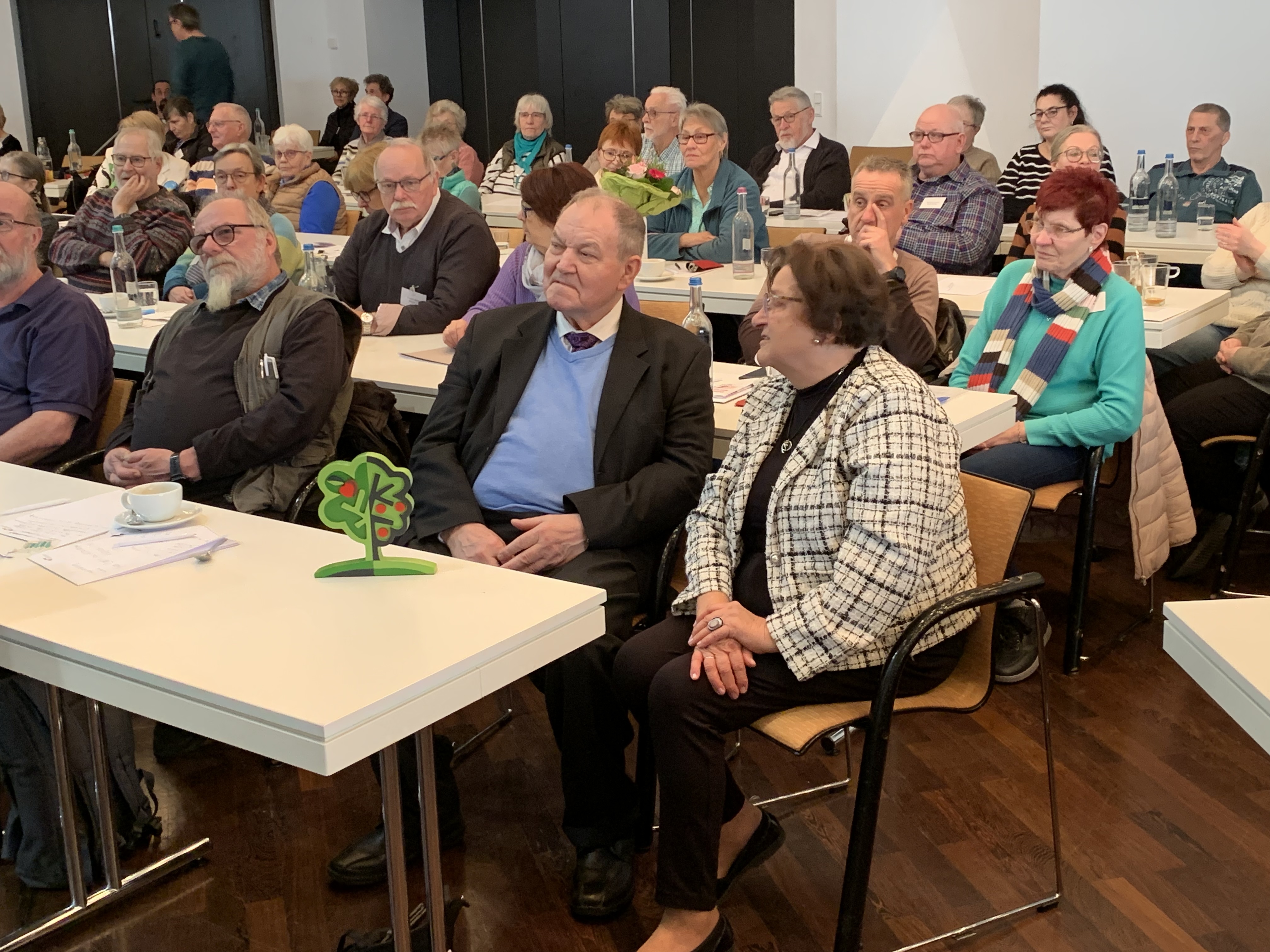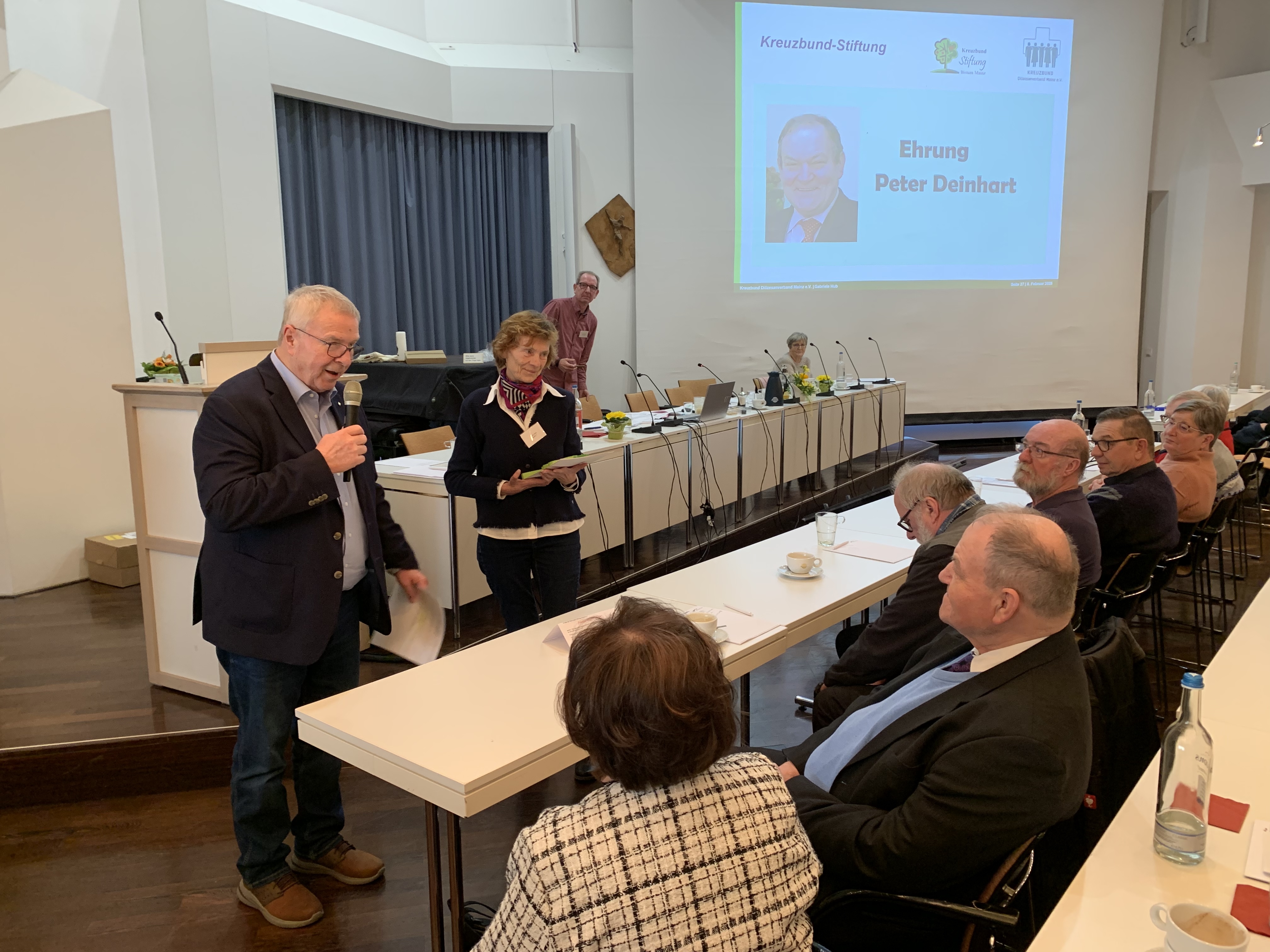 Herbert Rogge stellte die aktuellen Zahlen der Kreuzbund Stiftung vor. Allein die Zustiftungen 2024 betrugen 12.111 €, inkl. der Sonderzustiftung von Peter Deinhart. Durch den Kalenderverkauf kamen der Stiftung 4.057 € zugute. Das gesamte Stiftungsvermögen beträgt mittlerweile 133.988 €. Ein besonders Ereignis ist immer die Verleihung des Stiftungsbaumes, der dieses Mal an den ehemaligen Diözesan-Caritasdirektor in Mainz Peter Deinhart verliehen wurde. Herr Deinhart hat vor 17 Jahren die Stiftung gegründet und ihr mit viel Herzblut den Weg geebnet. Weiterhin war er Mitbegründer des DV Mainz und hat den Kreuzbund mit großem Engagement unterstützt.