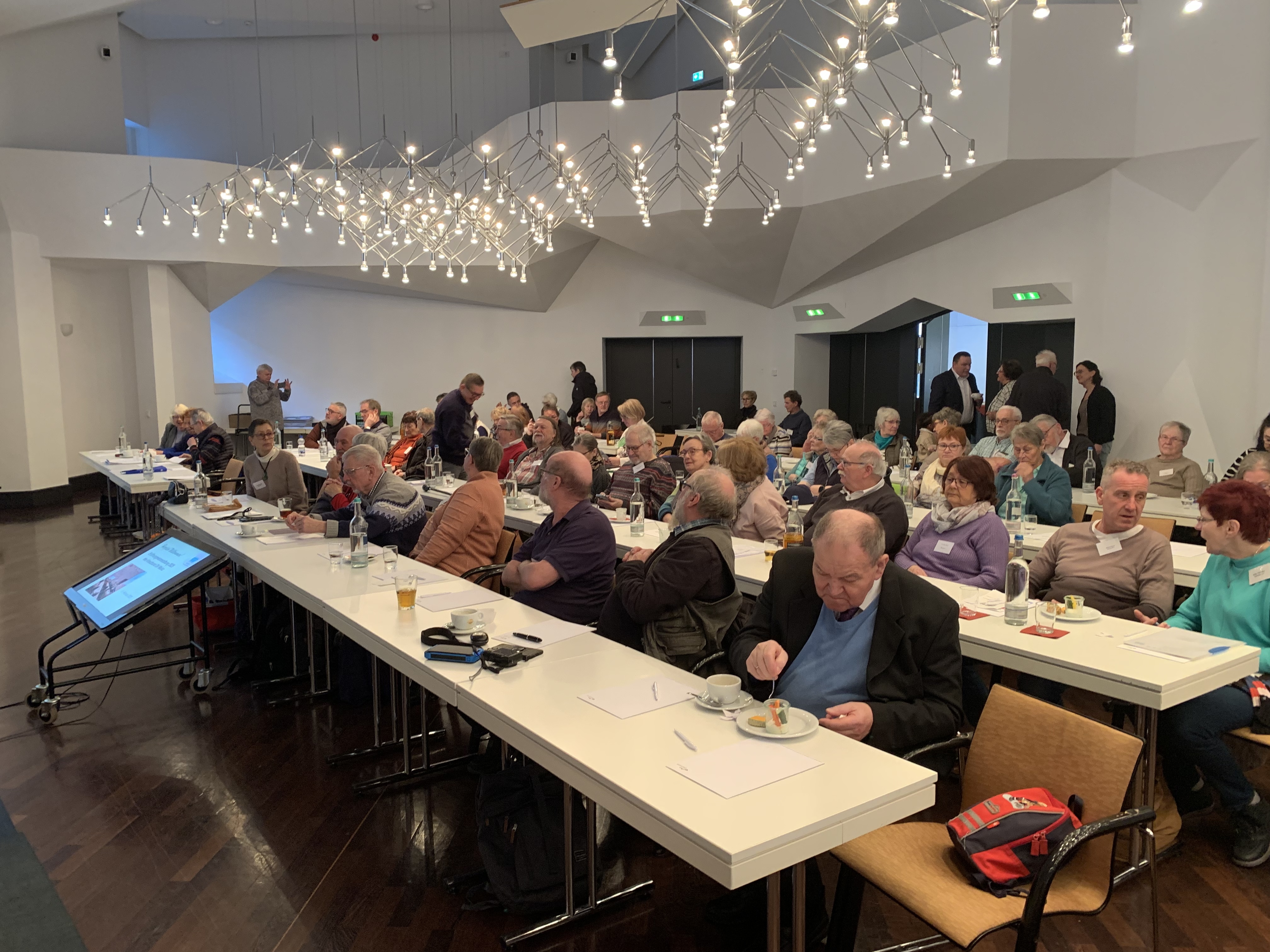 Unser Gastredner Rudi Barth, ehemaliger Suchtreferent im DV Trier und langjähriger Berater im DV Mainz, konnte trotz einer Autopanne dank eines hilfsbereiten Mechanikers im Hunsrück (!!) rechtzeitig zu seinem Referat „Frieden beginnt bei mir“ vor Ort sein. Frieden in sich zu entdecken, in dem wir Gelassenheit, Selbstakzeptanz und Selbstvergebung üben, ist eine wichtige Ressource für uns. Um dem inneren Unfrieden in uns zu entfliehen, sind wir in die Sucht verfallen. Wir müssen uns so annehmen, wie wir sind und inneren Frieden mit uns selbst schließen. Übungen zu Dankbarkeit, Achtsamkeit, Selbstakzeptanz und Selbstvergebung können uns dabei unterstützen, unser Leben friedlicher zu machen. Mit einem langen Applaus dankten wir Rudi Barth für diesen eindrucksvollen Vortrag.