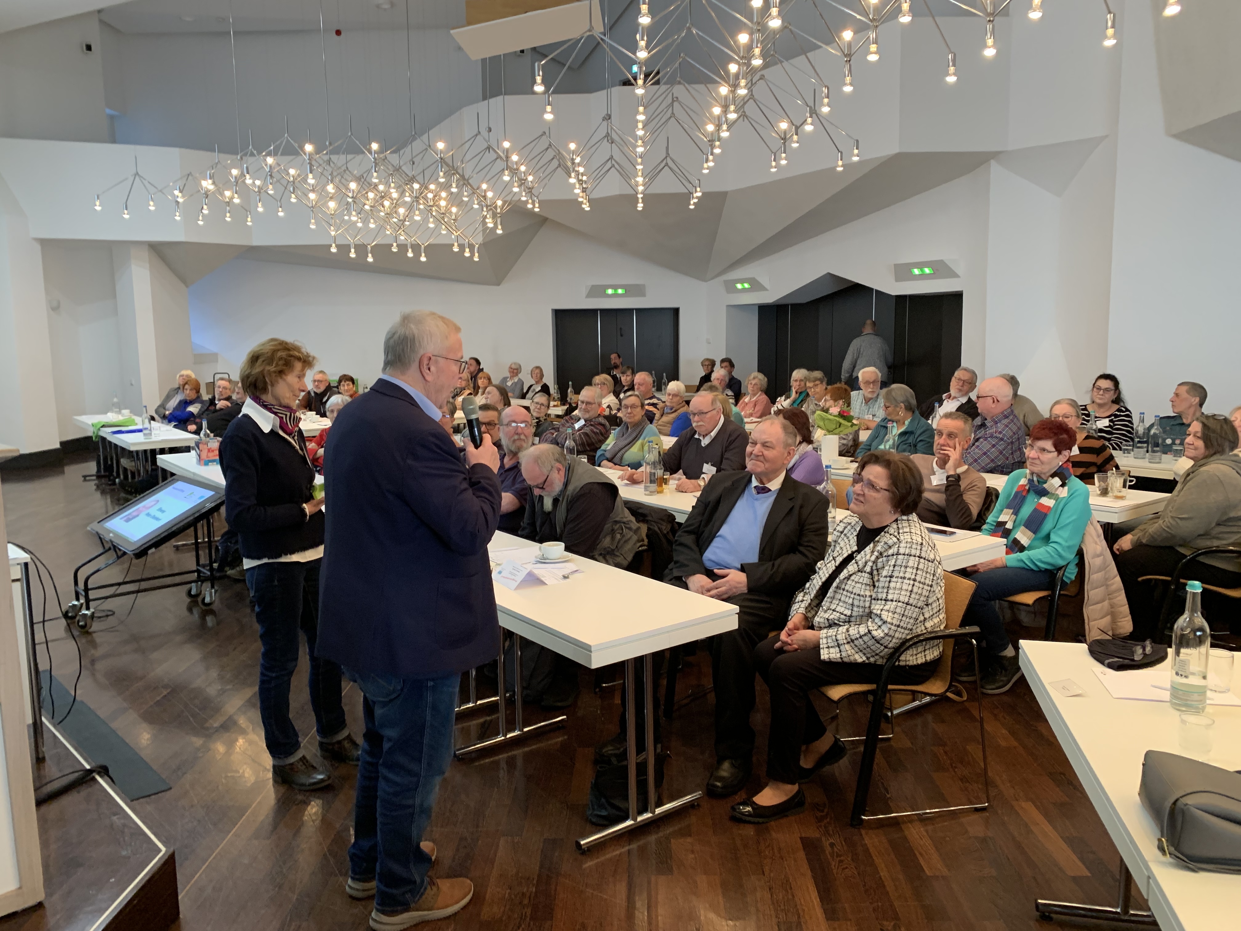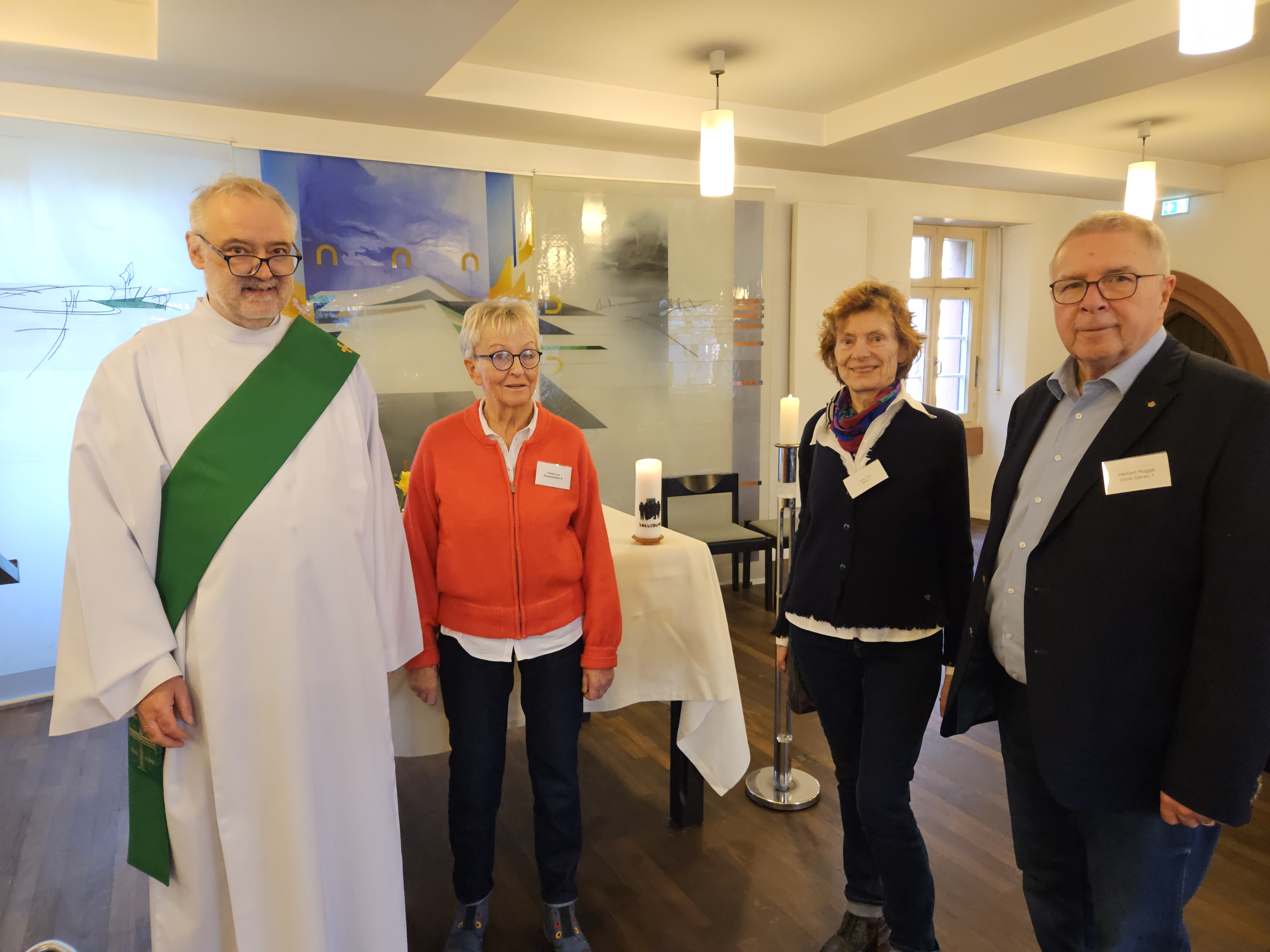 Nach dem traditionellen Stehkaffee mit vielen Begrüßungen von lieben Weggefährten, die man z.T. lange nicht gesehen hatte, empfing uns unser Diakon und geistlicher Beirat Martin Huber zum Gottesdienst. Allein das wunderschöne Eingangslied „Komm her, freu Dich mit uns, tritt ein; denn der Herr will unter uns sein.“ sowie die empathische und ermutigende Predigt von Martin Huber stimmte uns auf eine eindrucksvolle Eröffnungsveranstaltung ein.