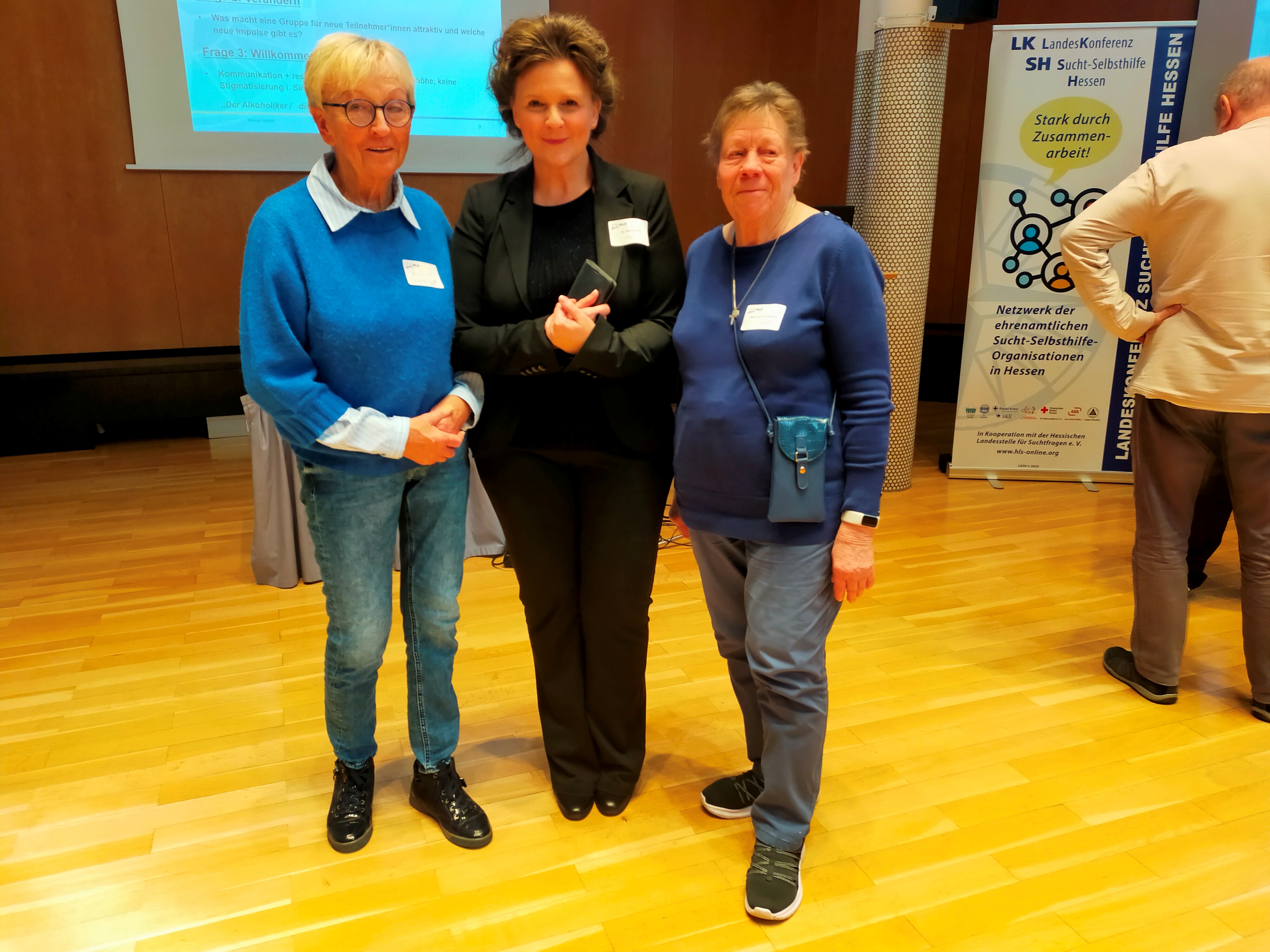 In ihren Grußworten betonte die Sprecherin der Landeskonferenz Sucht-Selbsthilfe Hessen (LKSH) Elke Lenz, wie wichtig für unsere zukünftige Arbeit der Dialog zwischen den Generationen sein wird und welche Chancen uns durch einen Generationenwechsel eröffnet werden. Der neue Vorstandsvorsitzende der HLS Lars Lauer rief uns dazu auf, unsere Lebensgeschichten zu nutzen, um die junge Generation für die Arbeit in der Sucht-Selbsthilfe zu motivieren.