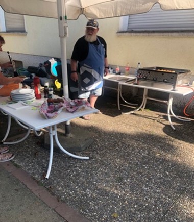 Einen wunderschönen und von den Temperaturen angenehmen sonnigen Sommertag bescherte uns der Wettergott zu unserem diesjährigen Grillfest. Wie schon in den vergangenen Jahren, so war auch in diesem Jahr das Interesse sehr groß so das wir über 50 Gruppenteilnehmende, Angehörige sowie einige Gäste begrüßen durften. Die idealen Räumlichkeiten dazu stellte uns das Haus der Senioren in Rüsselsheim zur Verfügung. Nachdem die üblichen Vorbereitungen (Bestuhlung, Sonnenschutz etc.) erledigt waren, konnte man zum gemütlichen Teil über gehen. Ab 14.00 Uhr trafen dann nach und nach alle Teilnehmenden ein. Zunächst war natürlich die erste Stärkung mit Kaffee und Kuchen bei allen angesagt. Ein besonderer Dank geht an die Damen Hildegard Lasenga, Silke Stoye und Helga Kretschmer für die tollen gespendeten Kuchen. Auch ein herzliches Dankeschön an Beate Seidel und Helga Kretschmer am Kaffee und Kuchen Buffet sowie unserem Grillmeister Roland Libert.